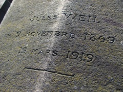 – C’est dans le tombeau de son compagnon Jules Weil que fut inhumée Angelica Kostrowitzky, la mère de Guillaume Apollinaire. Rappelons que si le poète mourut en novembre 1918 de la grippe espagnole, sa mère et son beau-père le suivirent et moururent de la même maladie en 1919. Seul le nom de Jules figure sur la tombe.