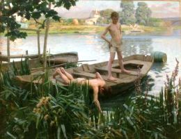 Chatou. Bien qu’ami intime des Impressionnistes, il ne fit jamais partie de ce mouvement et resta fidèle à l’enseignement de son maître, Léon Gérôme. Il fut ainsi peintre d’histoire et orientaliste. Il fut également un brillant affichiste. Dans le même caveau repose son frère, Maxime REALIER-DUMAS (1867-1909), qui fut sculpteur.