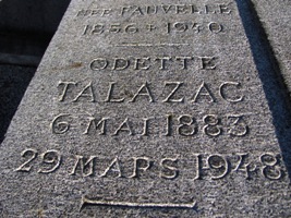 Odette TALAZAC (1883-1948), qui débuta par le chant et le music-hall, avant de se tourner vers le théâtre puis le cinéma. Elle ne fut jamais au premier plan mais se fit remarquer, entre 1928 et sa mort, dans un très grand nombre de seconds rôles. Elle tourna avec Clair (Le million), Renoir (La règle du jeu), Duvivier (La fin du jour), ou encore Clouzot (L’assassin habite au 21). Au théâtre, elle fit partie de la troupe de Jouvet et créa avec lui Knock.