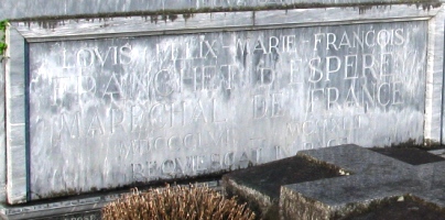 Un petit cimetière breton comme il y en a tant d’autres : on pousse la porte, on remarque vite que l’on n’y fera pas de grandes trouvailles. Et puis, contre un mur, une surprise : Franchet d’Esperey ! Des maréchaux de France, il n’y en a tout de même pas tant que ça ! On sait qu’il n’y a rien dans le Beyern, et on se demande comment on a pu passer à côté. Et puis la mémoire revient : n’est-il pas aux Invalides ? Bref, bien des interrogations qui sont rapidement levées dès que l’on fait quelques recherches.