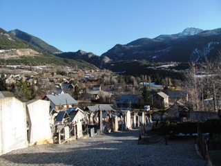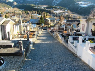 Guillestre se trouve dans les Hautes-Alpes, dans la magnifique vallée reliant Briançon à Gap, et à proximité de la cité vaubanne de Montdauphin. Perché comme c’est souvent le cas, le cimetière offre des vues généreuses sur la vallée.