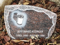 C’est également dans ce cimetière que repose le photographe autrichien Mario ATZINGER (1908-1990). Sportif et passionné de montagne, il devint moniteur de ski puis guide de haute-montagne. À la suite d’une grave chute, les pieds gelés, il dut subir une amputation partielle. Fermement opposé au nazisme, il quitta son pays lors de l’Anschluss et s’exila en France. Dénoncé et arrêté durant l’Occupation, il fut déporté à Buchenwald. Il survécut et ouvrit un studio photographique à Avignon. Il y rencontra Jean Vilar et une relation amicale durable s’installa entre eux, et celui-ci put, chaque année, fréquenter en toute liberté les coulisses et les plateaux du Festival où il prit des milliers de clichés. Son oeuvre demeure aujourd’hui la mémoire photographique du célèbre festival. Mort à Avignon, il préféra être inhumé aux pieds des montagnes.