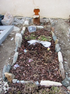 Lors de la visite en hiver, un détail incongru se retrouve de tombes en tombes : cagettes, plastiques et caissons hermétiques ! Il s’agit tout simplement de protéger du gel les plantations !