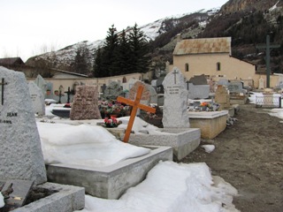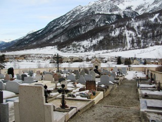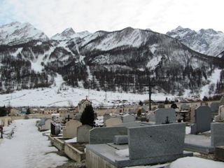 On peut dire que le cimetière se trouve au bout des pistes ! L’animation sonore qui y règne en fin de journée se répercute dans le cimetière, le tout dans le cadre majestueux des montagnes !