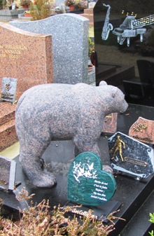 La seule curiosité du cimetière est la présence peu classique d’un ours, de taille respectable ? sur la tombe d’un jeune homme.
