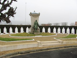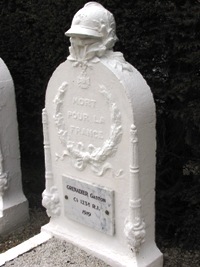 – Le monument aux morts est imposant et figure un soldat tenant couronne mais marchant d’un pas volontaire. Tout autour, en hémicycle, les tombes des soldats tombés se démarquent par leur inhabituelle ornementation.