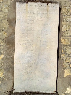 – Une pierre tombale, posée contre le mur du cimetière, témoigne des vicissitudes que connurent les dépouilles des protestants avant l’Edit de tolérance de 1787. L’épitaphe indique effectivement :