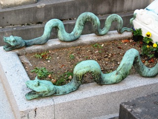Sa tombe se signale par deux magnifiques et menaçants serpents de bronze.