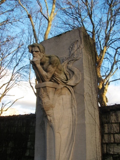 Statuaire et sculpteur atypique et génial (il aima représenter des visages grimaçant), il se fit remarquer au Salon de la Société Nationale des Beaux-Arts en 1899 avec un buste intitulé Demos. Spécialisé dans les œuvres funéraires, on connaît de lui deux oeuvres majeures au cimetière Montparnasse : le buste extraordinaire de morgue de Sainte-Beuve (17ème division) et l’énigmatique cénotaphe de Baudelaire (27ème division). On pourra également admirer sa statue de Zola à Médan.