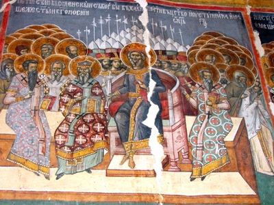 Nous ne pouvions décemment traverser cette partie de la Roumanie sans faire escale dans quelques-uns de ses si célèbres monastères orthodoxes. Nous effectuons ce passage incontournable en nous concentrant sur des monuments étroitement liés à Vlad Tépès, en commençant par le monastère de Cozia, fondé par Mircea l’ancien, premier voïévode de la branche de la dynastie des Basarab, à laquelle appartient Vlad Dracula. Construit sur une avancée de terre plongeant dans la rivière Olt, l’endroit est fascinant avec ses murs intérieurs entièrement couverts de vastes fresques bibliques qui s’organisent comme les cases d’une bande-dessinée démesurée. C’est en discutant avec un jeune moine barbu et chevelu, comme le veut la tradition orthodoxe, que nous apprenons l’histoire du lieu. Le bâtiment devint le monastère principal de Valachie sous l’impulsion de Vlad Dracula, durant son second règne, un geste politique clair qui visait à associer la religion orthodoxe à la branche des Mircea, en opposition à celle des Dan ? soutenue par la bourgeoisie de Brasov notamment ? à laquelle il n’eut de cesse de s’opposer pour conserver ou récupérer son pouvoir.