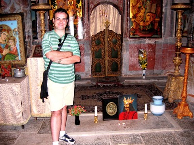 Reprenant notre route vers le sud, nous bifurquons juste avant Curtea de Argès, l’une des capitales de Vlad Tépès, afin de visiter un monastère qu’il aurait fondé : celui de Govorra. Contrastant sévèrement avec Cozia, il s’agit cette fois d’un petit édifice perdu au milieu d’un village complètement ignoré par les touristes. En discutant avec une bonne sœur parlant quelques mots d’anglais, nous découvrons une histoire différente de celle que nous avions entendue. En fait, l’érection du monastère de Govorra commença sous le règne de Vlad Dracula et s’acheva, peut-être, sous celui de son fils. Mais l’histoire qui relie ce dernier à l’édifice religieux est plus intéressante. Alors que Dracula s’opposait à un puissant boyard de la région ? Albu cel Mare ? celui-ci rasa le monastère et s’empara dans la foulée de deux villages voisins. Furieux, Vlad Tépès fit prisonnier le boyard récalcitrant puis l’empala, lui et toute sa famille, avant de placer sous l’autorité directe du monastère les deux villages sur lesquels il avait fait main basse. Ainsi, Dracula apparut comme le sauveur du monastère et l’un des agents de sa reconstruction, moment dont les moines actuels continuent d’évoquer le souvenir avec grand respect.