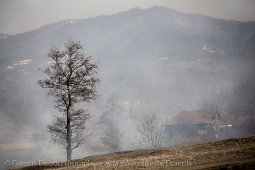 Dans le Marginimea Sibiului, près de Sibiu dans le nord de l’ancienne Valachie, nous traversons une région dans laquelle Vlad Tépès s’illustra régulièrement en remédiant d’une manière plutôt brutale aux problèmes causés par des bourgeois et marchands récalcitrants qui peinaient à le reconnaître comme suzerain et voulaient s’affranchir de toute taxe émanant du pouvoir valaque. Choisissant les petites routes de campagne pour visiter cette terre riche d’histoire, nous passons par de nombreux villages dont les noms sont évoqués dans les textes historiques relatifs à Vlad Dracula. Aujourd’hui, ce ne sont que des noms, parfois différents, sur des panneaux indicatifs. Mais les Roumains profitant de l’arrivée du printemps et du dégel corollaire pour mettre le feu aux champs avant de les labourer, plusieurs de ces villages nous apparaissent nappés d’une fumée qui rappelle fugitivement l’état dans lequel Vlad Tépès les abandonna un demi-millénaire plus tôt.