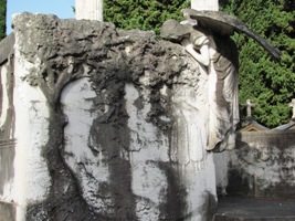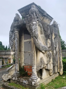 – Beaucoup de tombeaux, dont certains ornés de sculptures ou de médaillons, sont très usés, illisibles, en état de décomposition minérale... Ici comme ailleurs, certains ornements résistent mal au temps.