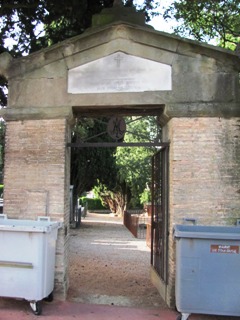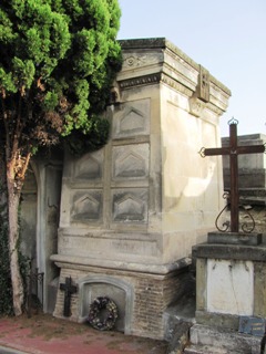 la réunion, en une enceinte commune, des enclos des couvents. Ils se partagent l’espace, chacun étant constitué d’un ou plusieurs tombeaux enceints de grilles. Une porte sépare symboliquement le cimetière laïc de ce cimetière.