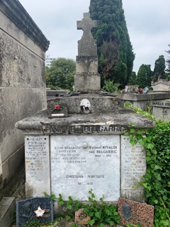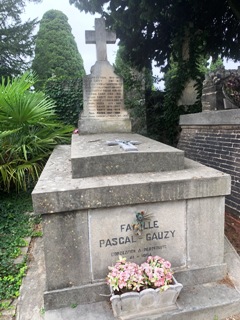 – La famille GISCARD est une famille de sculpteurs et manufacturiers toulousains, producteurs d’ornements architecturaux en terre cuite. Avec les Virebent dont ils étaient les concurrents, la manufacture Giscard est à l’origine de la plupart des ornements de l’architecture néo-classique toulousaine. Dans ce caveau de famille repose, parmi d’autres membres de la famille, Henri GISCARD (1895-1985), qui fut second prix de Rome et exposa au Salon des artistes français. Leur tombe est ornée de deux beaux bas-reliefs.