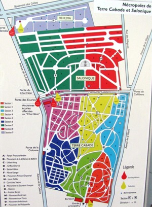 A partir de 1840 commença le transfert des anciens cimetières, y compris les cimetières protestants et juifs qui étaient jusqu’alors séparés. Le plan atteste des agrandissements successifs du cimetière, l’extension la plus moderne étant le cimetière de Salonique, séparé de Terre-Cabade par une route. Le cimetière fait actuellement 33 hectares, ce qui est une taille plus que respectable.