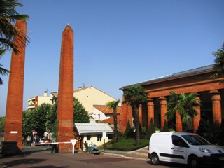 (Isère), il créa les " conduites forcées " pour l’alimentation de ses turbines hydrauliques (1867), puis appliqua, le premier, l’énergie des hautes chutes ainsi captée à une dynamo de Gramme, produisant l’électricité, devenant le " Père de la Houille Blanche " (vocable qu’il avait imaginé lui-même). L’imposant monument, en forme de Temple antique ruiné, est de Chiattone, de Lugano. On y voit un bas-relief de l’usine de Lancey.