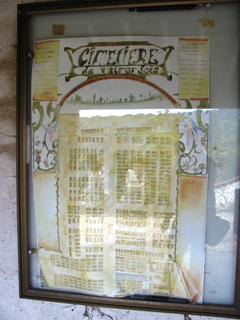 – Un panneau peint reproduit fidèlement les tombes et indique leurs propriétaires. Il signale la présence de plusieurs personnalités.