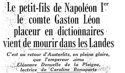 – Gaston (1857-1937), troisième comte Léon, qui fut VRP et vendait des dictionnaires Larousse ! Il s’installa et mourut à Montaut, dans les Landes, et c’est là bas qu’il fut inhumé, avec sa seconde épouse (on consultera également cet article).