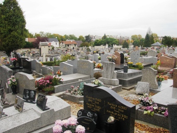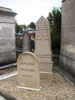 – A l’entrée du cimetière, une statue imposante interpelle le visiteur. Ici repose l’industriel Joseph Favier (1814-1886), dont la propriété de Bry, selon son vœu, devint une maison de retraite. Une statue de la Résurrection en marbre orne cette tombe, érigée en 1887. Elle est l’œuvre du sculpteur italien Enrico Chiaradia, auteur du monument de Victor-Emmanuel sur le capitole à Rome.