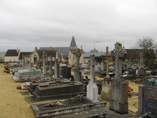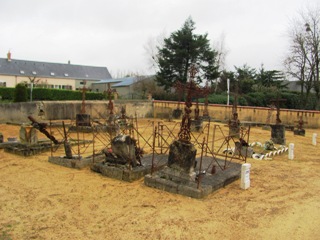 Comme c’est régulièrement le cas dans la Sarthe, le petit cimetière de Coulans-sur-Gée offre le contraste toujours saisissant de ses vieilles tombes de pierre et ses croix rouillées sur fond de sable ocre.