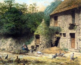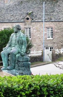 dans la petite commune de Gréville-Hague, quasiment à l’extrémité du Cotentin, dans cette fameuse point de la Hague, c’est bien le peintre Jean-François Millet, le père de l’Angélus et des Glaneuses. Non seulement il naquit ici (dans le petit hameau de Gruchy, une "fin-du-monde" donnant sur la mer et le rocher du Castel Vendon, mais tout l’évoque : les lieux qu’il peignit (on dispose ainsi d’un tableau de l’église et du cimetière à son époque), sa statue par Alphonse Marcel-Jacques (qui repose à Cherbourg), ou encore sa maison natale devenu musée...