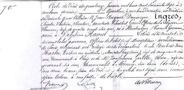 Il meurt à quatre-vingt-six ans le 14 janvier 1867 des suites d’une pneumonie. Il est enterré le 17 janviers au Père-Lachaise dans la 23ème division. Sa stèle est l’œuvre de Baltard, son ami et architecte des Halles. Jean-Marie Bonnassieux est l’auteur du buste. Ses deux épouses reposent à ses côtés.