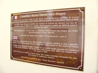 Une plaque, à l’entrée du cimetière, indique sa présence ici.