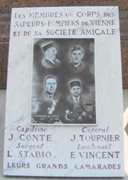 4 janvier 1966, La raffinerie de Feyzin, dans le département du Rhône, explosa. L’accident avait débuté par une fuite de propane sous une sphère de stockage mal conçue. L’incendie se déclencha par le contact de la poche de gaz avec un véhicule. Cet incendie entraîna les explosions successives des sphères de stockage de propane. Cette catastrophe fit 18 morts, dont 11 pompiers et 77 blessés. Au-delà de la raffinerie, les dégâts matériels incluèrent des toitures endommagées jusqu’à 2,2 km, et des vitres brisées à plus de 8 km. L’explosion fut perçue jusqu’à 16 km en aval de la raffinerie. Parmi les victimes figuraient quatre pompiers de Vienne appelés en renfort. Un obélisque rappelle leur souvenir dans ce cimetière.