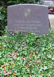 En Europe cependant, nous pourrons l’évoquer par la présence de la tombe de son étonnant père, l’aristocrate anticonformiste Michel de Crayencour (1853-1929), et de sa troisième et dernière épouse. Il repose sous une stèle du cimetière de Laeken, à Bruxelles.