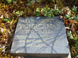 Marguerite Yourcenar avait acquis de son vivant un emplacement dans le cimetière Brookside de Somesville, dans le Maine, pour y être enterrée aux côtés de Grace Frick (1979), sa compagne et traductrice durant quarante ans, et d’une dalle en hommage à Jerry Wilson, son dernier compagnon de voyage (1986). Le hasard veut que ce cimetière jouxte une maison où elle avait vécu plusieurs étés dès la découverte de l’île, dans les années 1940.