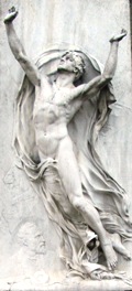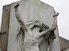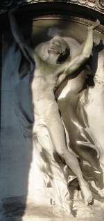 – Au cimetière protestant de Montpellier (34) : la statue en bronze de la tombe Bazille.