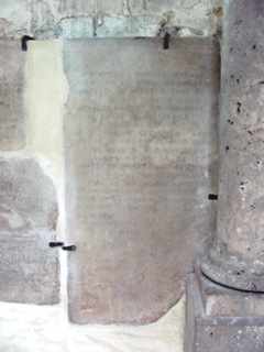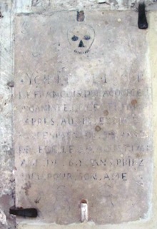 Sur le mur sud de l’église Notre-Dame de Moret se trouvent une série de pierres tombales anciennes.
