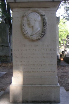 Malheureusement le bouton n’eut pas le temps d’éclore : la demoiselle mourut l’année suivante, à peine âgée de 14 ans. Elle repose toujours au Père-Lachaise, dans la 42ème division, non loin de Sarah Bernhardt et dans l’ombre quasi perpétuelle d’une imposante chapelle. Un médaillon, abîmé par le temps et une restauration un peu trop agressive, nous la représente de profil, les cheveux tirés comme sur le portrait d’Ingres, une demi sourire aux lèvres.