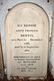 Bertin l’aîné reposait avec son épouse et sa fille Louise dans la 8ème division du Père-Lachaise. C’est d’ailleurs dans cette division que le placent les guides. Cependant, il y a quelques années, il a été exhumé puis ré-inhumé dans le caveau d’un de ses descendants dans la 66ème division. Par la porte de la chapelle, on peut d’ailleurs apercevoir la stèle originelle qui a été conservée.