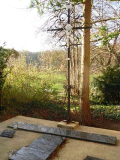 Elle était tombée sous le charme de cette petite commune dont elle appréciait la tranquillité, d’où sa présence dans ce cimetière. Sa tombe, à l’écart au fond du cimetière, est surmontée d’une grande croix en fer forgé. Au centre de celle-ci, entourée de deux angelots, une signature stylisée est gravée dans l’acier.