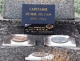 Paul-Hemir MEZAN (1912-1944), sous-officier engagé, quitta en 1940 le Maroc où il était en mission pour rejoindre Londres. Il intervint en Egypte, puis après être passé en mission dans les Somalis, participa aux campagnes de Tunisie et de Libye. Débarqué en Italie, il fut tué par un obus après la reprise de Rome. D’abord inhumé à Bolsena (Italie), il fut par la suite tranéféré à Dury.