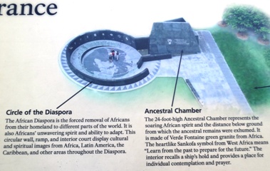 Un appel d’offre pour la construction du mémorial a été emporté par les architectes Rodney Leon et Nicole Hollant-Denis en 2004. Le projet fut livré en 2007. Il dispose d’ une carte de la région de l’ Atlantique au sein du « Cercle de la Diaspora » en référence au passage du milieu par laquelle les esclaves ont été transportés d’Afrique vers l’ Amérique du Nord. Il est construit en pierre d’ Afrique du Sud et d’Amérique du Nord, pour symboliser les deux mondes ainsi liés. Le monument est surnommé La porte du retour, référence à la porte du non retour, trompeusement considéré comme l’un des principaux lieux d’embarquement en Afrique d’esclaves vers l’Amérique, sur l’île de Gorée.
