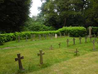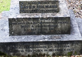 – celui de gauche est celui de Xavier UHLMANN (1828-1904), valet personnel du Prince Impérial (1857-1879), puis trésorier privé et régisseur du domaine impérial de Farnborough Hill de l’Impératrice Eugénie (1879-1904). C’est en 1979 que ses restes furent rapportés ici.