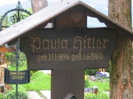 Ce cimetière recèle cependant, malgré sa confidentialité énigmatique, une tombe bien plus chargée de symbole : celle de la plus jeune soeur d’Hitler, Paula (1896-1960). À la demande de son frère, elle changea son patronyme et se nomma Paula Wolff (Wolf signifie « loup » en allemand, le surnom donné à Hitler). Pendant la Seconde Guerre mondiale, elle occupea un poste de secrétaire d’un hôpital militaire jusqu’à la fin du conflit, où elle fut arrêtée par des officiers de renseignement américains en mai 1945. Elle fut libérée, et partit s’installer à Vienne où elle travailla dans une boutique d’artisanat jusqu’en 1952. Revenue à Berchtesgaden où elle vécut en recluse dans un logement de deux