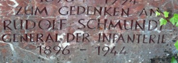 de camp de Hitler, Schmundt fut nommé chef du bureau du personnel de l’Armée de terre de 1942 à sa mort et exerça ainsi une influence décisive sur la politique de gestion du personnel de l’Armée de terre. Il fut l’une des victimes de l’attentat du 20 juillet 1944 contre Adolf Hitler. Selon ses dernières volontés, une cérémonie d’hommage se tint au mémorial de Tannenberg. Sa dépouille mortelle fut ensuite transportée à Berlin pour que le lendemain il soit inhumé, avec les honneurs militaires, à l’Invalidenfriedhof de Berlin. Cette tombe familiale, où repose son épouse et son fils, lui tient lieu de cénotaphe.