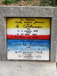 L’architecte Charles-Édouard Jeanneret-Gris, connu sous le pseudonyme de LE CORBUSIER (1887-1965), rejoignit dans le tombeau son épouse après s’être noyé dans la Méditerranée. Il avait conçu leur tombeau commun.