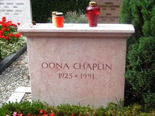 Contiguë à sa tombe se trouve celle de sa dernière épouse, Oona CHAPLIN (1925-1991), fille de l’auteur dramatique et prix Nobel de littérature Eugene O’Neill et de l’écrivaine Agnes Boulton, avec laquelle il eut huit enfants, à l’origine de la fameuse dynastie Chaplin dans laquelle on compte de nombreux artistes.
