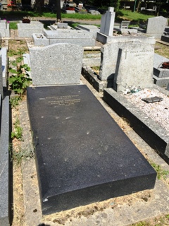 A l’ombre, dans un coin, un imposant objet d’art (Comme on dit dans Astérix), on pense à un gros poisson, ça doit faire deux tonnes et ça pèse sur la pierre tombale semblant empêcher un nommé Jacques Norval (1914-1998) de sortir !. Il doit s’agir du veuf d’une des célèbres sœurs coiffeuses Carita. (Auraient-elles osé lancer "Carita Tifs" ? J’en doute ! Ont été absorbées par l’Oréal, plus tard, après leur retrait et la cession au neveu. Deneuve et Dorléac sont coiffées par elles dans les films de Jacques Demy).