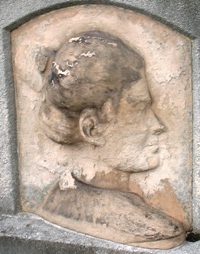 Un beau médaillon en bronze sur la tombe du danseur de tango René Ronald-Poigt.