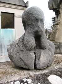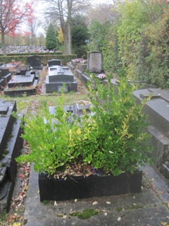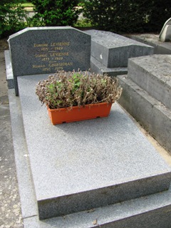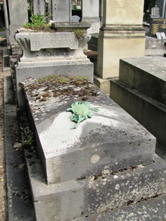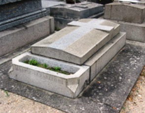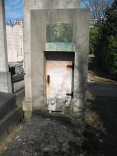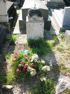 Alfred JARRY (1873-1907), fut inhumé. L’existence de sa tombe est problématique : on lit à peu près partout que sa tombe, non renouvelée, a désormais disparu. On sait, grâce à une souscription faite par le Mercure de France [3], où elle se trouvait avec précision : 23ème division, 5ème ligne, 5ème place. Si on se rend à cet endroit, on trouve une tombe anonyme dans un triste état, mais qui ne semble pas avoir bougée depuis bien longtemps. Il y a quelques années, Vincent de Langlade amenait ses visiteurs sur cette tombe en la présentant comme celle de Jarry… Dès lors, que penser ? Cet espace délabré n’est-il pas tout simplement la tombe de Jarry, qui si elle ne fut pas renouvelée, n’en fut pas moins laissée… Si un visiteur du site à plus d’info…