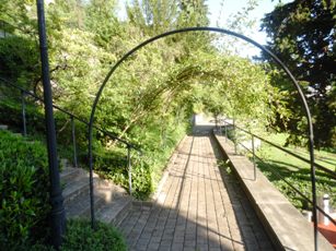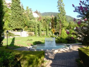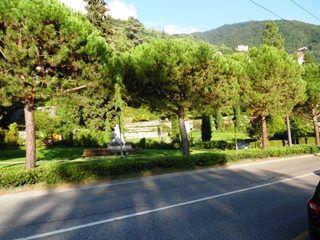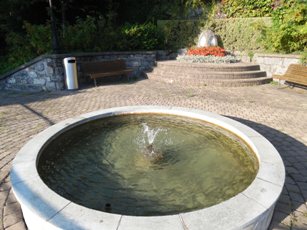En s’abaissant dans la pente, le cimetière de Planchamp se prolongeait par le Jardin des Roses, esplanade engazonnée, parsemée de plates-bandes florales, où figure la statue de marbre blanc représentant l’impératrice Elisabeth d’Autriche, sculptée en 1902 par A. Chiattone [1]. Une promenade publique était ainsi assurée aux visiteurs regagnant leur hôtel dans la proximité du cimetière.