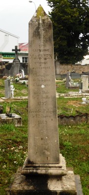 Il s’agit d’un des tombes les plus remarquables du cimetière sinon LA plus remarquable. C’est une plate-tombe en fonte datant de 1849. Quelques tombes de ce type sont connues dans la région de Poligny (je n’ai pas leur localisation et suis à leur recherche). Elles sont en voie de disparition et méritent évidemment d’être sauvegardées. Actuellement rien n’est moins sûr.