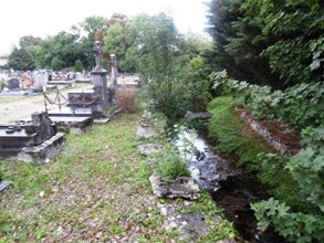 – Le cimetière est longé par un ruisseau.