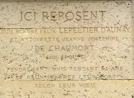En plein centre du village (et pas dans le cimetière), à quelques mètres du bord de la route départementale qui traverse le village, se dresse un tombeau imposant. L’inscription relate : Ici reposent Louis Honoré Félix Lepeltier d’Aunay et Antoinette Jeanne Joséphine de Beaumont son épouse tendrement unis pendant 41 ans et réunis pour l’éternité selon leur vœu. Ce tombeau est en fait un vestige de l’ancien cimetière du village qui se trouvait ici, à proximité de l’église, avant d’être « déménagé » au cours du XXe siècle.